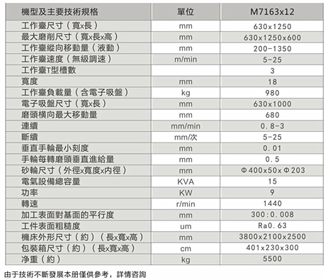 1、本機床屬于重切削磨床,適用于機械制造、模具等行業(yè)的平面磨削。可磨削鋼件、鑄件及有色金屬等材料。工件可直接固定在工作臺面上或放在電磁吸盤上磨削。
